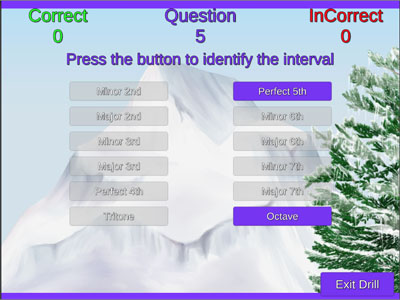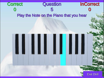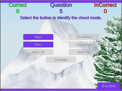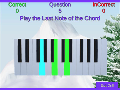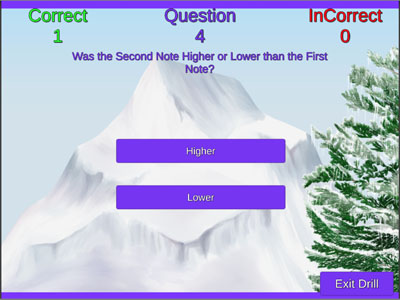 drills including Higher / Lower, Single Note, Intervals, Keyboard Intervals, Chord Modes and Keyboard Chords.